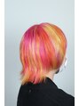 プリンになった部分だけリタッチして、ピンクをベースにオレンジとイエローをメッシュで入れた派手派手カラー!!!元々の髪が明るければリタッチでも大丈夫です。