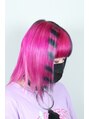 ピンクと黒のツートンカラー。顔周りにボーダー柄のアクセントを入れた遊び心のある派手髪!!