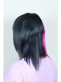 ピンクと黒のツートンカラー。顔周りにボーダー柄のアクセントを入れた遊び心のある派手髪!!