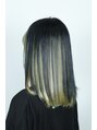 パステルイエローのインナーカラーにブルーブラックのベースカラーを入れたスタイル!コントラストがはっきりとした配色です。