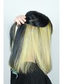 パステルイエローのインナーカラーにブルーブラックのベースカラーを入れたスタイル!コントラストがはっきりとした配色です。