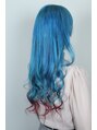 ハイトーンの水色と毛先にワインレッドを入れた裾カラー!ティンセルも入れてキラキラかわいい!