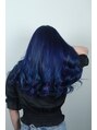 サファイアブルーとフェイスフレーミングとインナーにチラチラ見えるようにバイオレット!同系色カラーは統一感が出ますね!