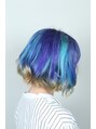 次にやりたいカラーを見越して、紫、青、エメラルドをアッシュに寄せて、毛先にはイエローオレンジを入れた完全お任せカラー!次にやりたいカラーがあるけど、派手にしたい場合はご相談くださいませ!!