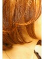 重めのシルエットですが、カットで表面に動きをつけラフなのに決まるスタイル!毛先に動きをつけるために、水イオンパーマをかけカラーはツヤのあるカッパーブラウンを。エレガントでもフェミニンでもあるスタイルなので、年齢を問わずに似合うボブです♪