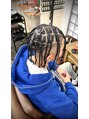 タイトロープ編みで地毛に馴染むようにエクスステを混ぜながら編みました
