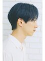 センターパート ツーブロクショートスタイル ダークブルーでトレンドをプラスしました