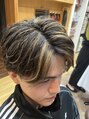 メンズハイトーンカラーオレンジインナーカラー刈り上げツーブロ