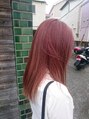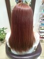 風になびくストレートな赤髪ピンクブラウンでカラーリング 宜しければ当店の他のスタイルも是非ご覧いただき。日常当店サロンワークのライブ感が少しでも伝わると嬉しいです。