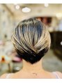 中間から先までブリーチが残ってましたが毛束感をだすカットで自然になじんだショートグラデーションボブです襟足が浮く強いクセがありましたが切り込むことによってうなじがしまって首がスマートに見えるようになりました