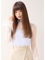 前髪が重ためのローレイヤースタイル。軽さと動きを出すために顔まわりはレイヤーを入れて優しい雰囲気を出す為に毛量も調整しています。