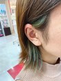 グリーン系のイヤリングカラー☆オージュアトリートメント#縮毛矯正#酸性ストレート#Aujua#白髪ぼかし#aujuaソムリエ#白髪ぼかしハイライト#髪質改善#インナーカラー#超音波トリートメント#白髪染め#イルミナカラー#水前寺#nドット#脱白髪染め#水前寺