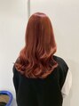 ブリーチベースに鮮やかなレッドオレンジをオン。しっかり発色しながらツヤも出るカラーです。巻き仕上げで動きをつけるとより華やかな印象に仕上がります。