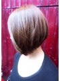 あごラインにスパットっと。襟足ぎりぎりにカット。前下がりボブのベーシックカットスタイルです。ドライヤーで乾かした状態で毛先が収まるように、ドライカットで丁寧に微調整しています。幅広い方にチャレンジしていただけるスタイルに一つです♪