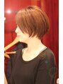 ヒシ型を意識したショートボブです。ヒシ型は日本人の骨格に会いやすいヘアスタイル。前からのシルエット、再度からのシルエット共にバランスがとりやすいヘアスタイルです。カラーリングはツヤ感を意識し、ちょっと明るめの10レベル。