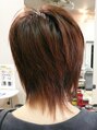 左と右の表情を極端に変えたアシメスタイル。個性的でクールさとフェミニンの2極化を。カラーは全体をオレンジブラウンにローライトを入れました。