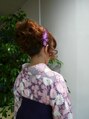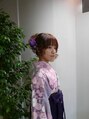 パーマで毛先にカールをだして、アップスタイル