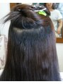 何もしてないとアフロになるそんなタイプのクセ毛です。ただこの髪質の方の多くが細く髪体力がそもそも無いです。しかし、攻めないと絶対に伸びる事がない、そんな髪です。