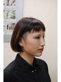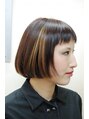 ベースはナチュラルボブの重めスタイルですが、前髪は短く、サイドとネープは刈り上げて2ブロック。深めのワインブラウンにブリーチのハイライト。と個性派スタイルに。髪をおろして刈り上げ部分を隠したり、耳かけして出したりアレンジも楽しめます。