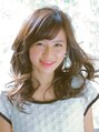 斜めバングで全体はレイヤーをいれ、毛先を軽くベースカットをして、ゆるめのウェーブでさらに動きを出しています。春を意識した軽やかスタイルです。