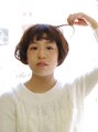 パーマの曲線で柔らかい質感を出したショートボブです。同じカットでも毛に丸みを足すことでグッと可愛らしい雰囲気になります。眉がのぞくショートバングもポイントです☆