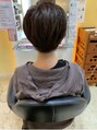 襟足に生えグセがあるお客様、丸みと適度な厚みで落ち着かせながらのショートヘアカラーピンクアッシュ系のグレイカラーになります