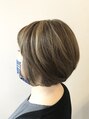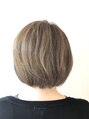 カットはハイライトの際に動きが出るようにボブベースにカット後、表面を軽く削りました。カラーは耳上から全体ハイライト後、全体にグレージュ系の10レベル、根元は6レベルで仕上げました。