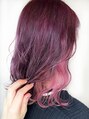全体をブリーチして上を濃いめカシスピンク、インナーをペールピンクに塗り分けました!1回のブリーチでもしっかり色味が入り、可愛らしい雰囲気になれます。