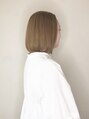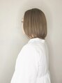 ブリーチ毛をミルクティーベージュの14レベルで仕上げました。根元はブリーチ毛と合わすために14レベルのミルクティーベージュにしました。