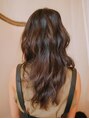 全体にゆるくパーマをかけてくせ毛風にスタイリング! 毛先はあえてカールを残しすぎず、くずすのがポイントです!トップにレイヤーを入れてあげることで、動きが出て、こなれ感を表現できます! 顔に少しかかる前髪が色っぽくて◎
