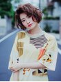 ボブスタイルですが、首のラインがスッキリ見えるスタイルです!! 大胆なパーマが可愛らしさアップさせます。バングはあげることで甘さと辛さのめりはりがついてgood!!カラーも明るめがキュートです☆