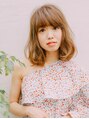 フルバングのボブなのに重たい印象にならないのは、前髪の透け感とアッシュベージュ系カラーが◎これからの時期に髪を下ろしても重たくならないです。
