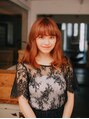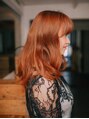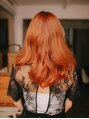 ヘアカラーはオレンジ系の夏に向けてオーダーが多いいヘアカラーです!スタイルはくせ毛風に見えるようにパーマをかけてあります。毛先は内側に入るようにカットをして、全体的には重ためなスタイルになっております!