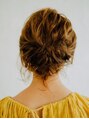 巻き髪アップ×かきあげバング