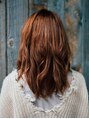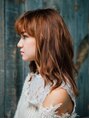 ハイレイヤーをあまり入れず全体的に重ためのヘアスタイルです。前髪は透けてあだが見えるように調節して野暮ったい雰囲気になりにくいようにしています!カラーはオレンジブラウンで!