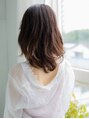 前髪など全体的に重ためな印象なのですが、前髪を片方に流してあげたり、顔まわりの髪の毛を外に流れるようにカットをしたりなどして肌見せの範囲を調節して重たすぎない印象を作っています!!