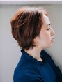 前髪なしの大人ショートスタイルです。カラーはハイライト、ローライトを入れて動きを出して全体はオレンジブラウンをオンカラーしてツヤ感を◎ストレートアイロンでハネさせたり、ウェーブで動きをつけると軽さが出るのでgoodです!!