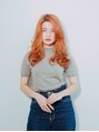 流行りのセンターパートスタイル!大人ナチュラルな印象を与えるスタイルですが、カラーリングをアプリコットオレンジカラーにすることで、個性的な印象に!オレンジ系のカラーリングは暖かく元気な印象も与えてくれます!
