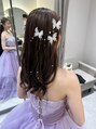 ナチュラルなダウンスタイルにヘアードはご持参の蝶々とパールシールをお付けしました