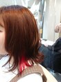 カラー+デザインカラー。サイドの内側をブリーチ後にマニキュアのピンクとレッドでアクセントカラーを入れました!ボブ×イヤリングカラーはとても可愛く仕上がりますね♪