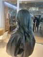 ブリーチ1~2回でグリーンカラーに!しっかりブリーチして色を入れることによって変なグリーンカラーにならないようにしています!グリーンや、ブルーはお任せください!