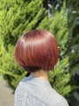 いつもショートにされるお客様、今回は以前染めた所に白髪が浮いてきたので赤をしっかり発色する様にカラーを調合しました。太陽光の下だとより赤が映えます。