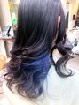 ターコイズブルーインナーカラー ロング カール 巻き髪