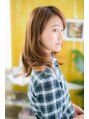 あご下からのワンカールでぐっと可愛さUP☆のセミディ。斜めバングで顔周りを明るく見せているので、ガーリーだけどアクティブな、好感度の高いスタイルに。流行りのベビーバングで幼い雰囲気にしたり、センターパートで大人っぽくたりと、イメチェンも◎