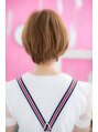 耳横にふんわりワンカールの丸みを持たせることで、ショートレングスでもボーイッシュにならず、リラクシーでガーリーな雰囲気に。明るいカラーをオンすれば元気な笑顔弾けるポップな印象に♪斜めバングで目力もUP!計算された似合わせカットの技が光ります☆