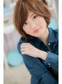 毛先にルーズなカールをつけて、ひし形フォルムに仕上げた美人顔ミディ。顔周りのふんわりワンカールで小顔に見せ、サイドに流した斜めバングで目力UP。大人ビューティなスタイルは、明るいミルクティカラーやベージュカラーでカジュアルにして親しみやすく。