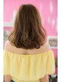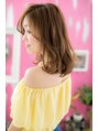肩のラインでフリルのように織り重なったランダムカール、ツヤカラー、斜めバング…女の子らしさをいっぱい詰め込んだ王道の愛されふわミディ。明るいベージュカラーで元気でヘルシーな雰囲気にすることで、甘くなり過ぎず同性からのも支持もバッチリです☆