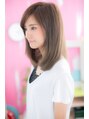 ほんのり内巻きカールでお行儀よくまとまったストレートと目力UPの斜めバングで、男女問わず人気の正統派スタイルに。オフィスでもデートでも女子会でもOK!イノセントカラーやマーメイドアッシュで肌ツヤ綺麗に見せたり、立体的なグラデーションカラーも◎