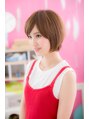 フォルムが丸くなるようにカットされたグラデーションボブベース。コンパクトフォルムで小頭効果を、長めの斜めバングで目力UP効果を狙います。大人かわいいナチュラルボブは、ピュアな魅力が詰まっているので好感度もバッチリ。伸ばしかけの方にオススメです