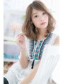 サイドにつなげた斜めバングで、目力強調しつつフェミニンなこなれ女子に。耳横にボリュームを持たせたひし形シルエットで小顔に仕上げてイイ女度UP!揺らめくヴェールウェーブで、重めスタイルになりがちなナチュラルミディにニュアンス感ある動きを演出☆